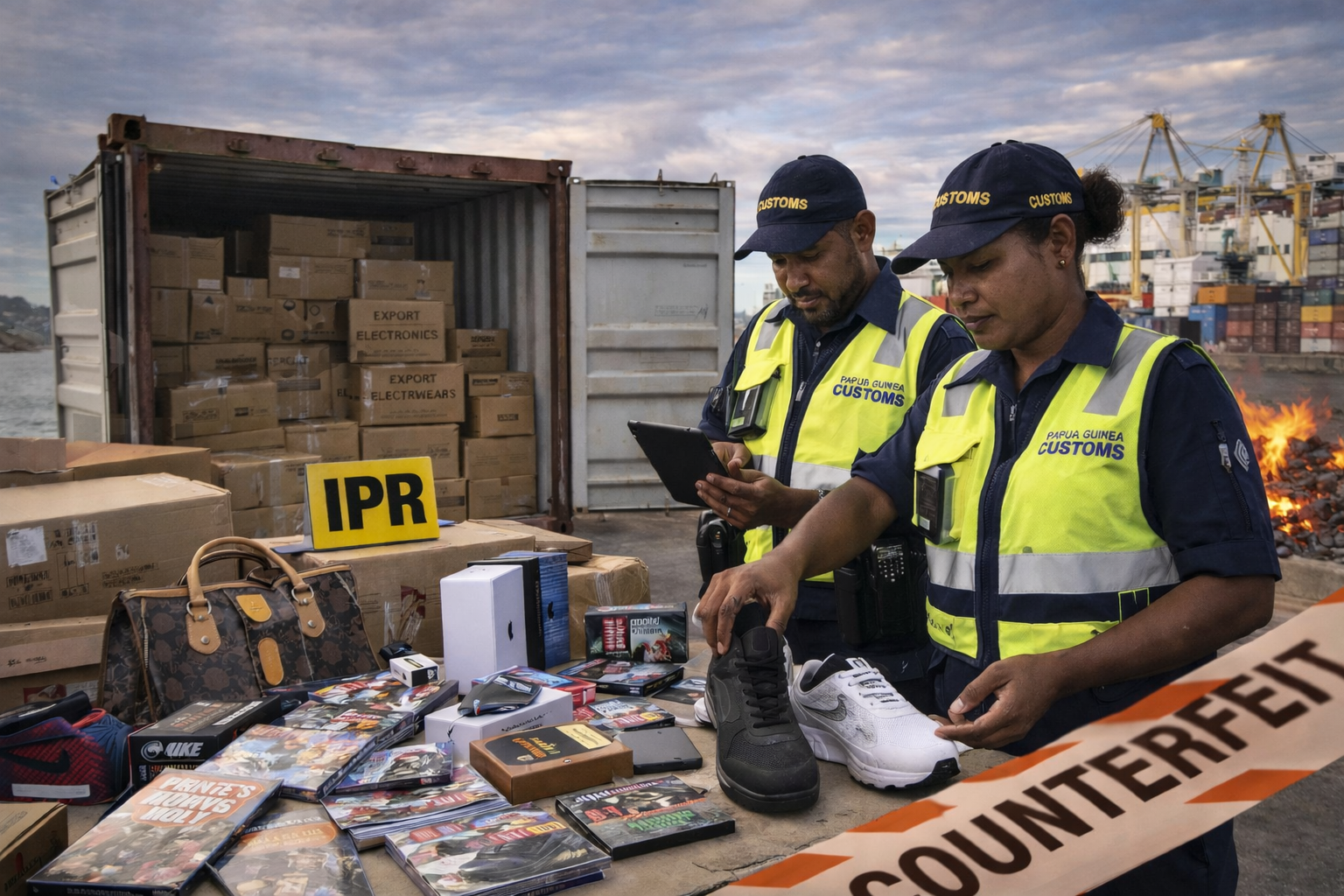 Papua New Guinea Customs Service is empowered to prevent the movement of pirated, counterfeit, or infringing goods across the border. This ensures the protection of economic and moral rights for copyright and trademark holders.